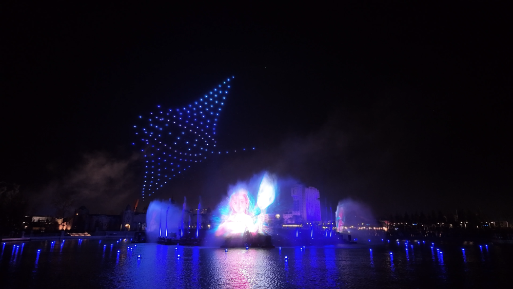The show feels more like a tech demo than a cohesive story. The most striking example is the fleet of autonomous light-up boats on the lake: