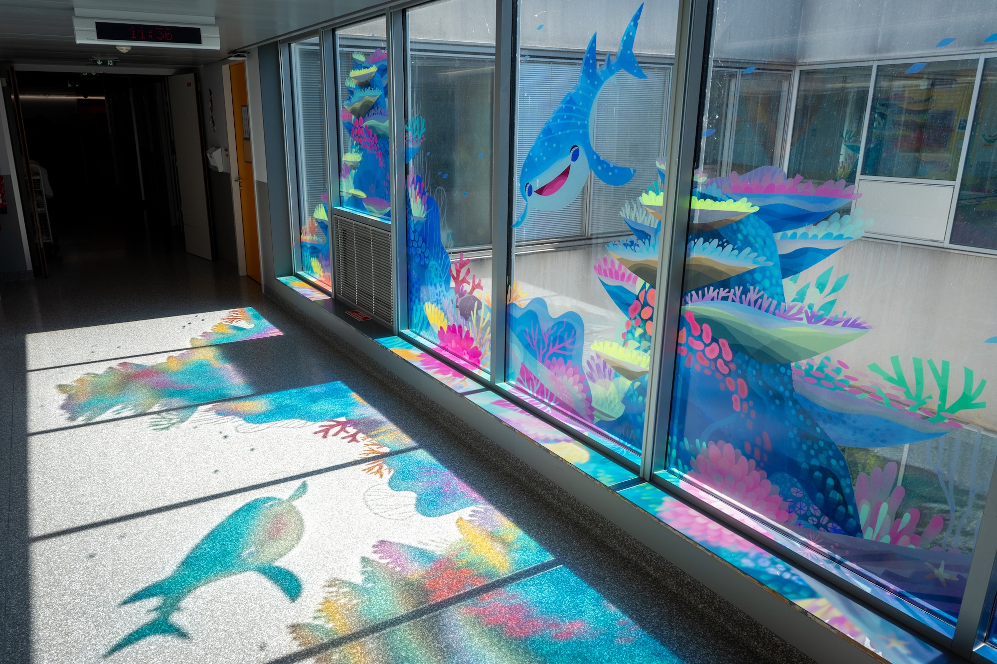 The Disneyland Paris teams worked hand-in-hand with the hospital staff to meet the specific needs of young patients. They carefully installed everything, paying special attention to glass surfaces to let light through while integrating the visuals seamlessly into the corridors. The first phase, for the pediatric emergency department, finished in early 2023. Now, the entire pediatric service shines bright since January 2026!