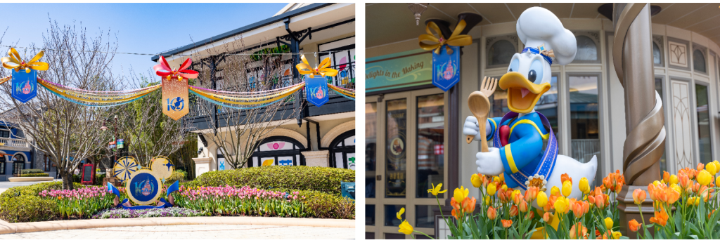 Everywhere you look, the birthday spirit is alive! From the moment you arrive, you’ll see dazzling new decorations. The characters sport glittering new outfits, and you’ll find exclusive merchandise, delicious food, and drinks. Even Disneytown and the resort hotels got a refresh! Every corner just sparkles with magic.