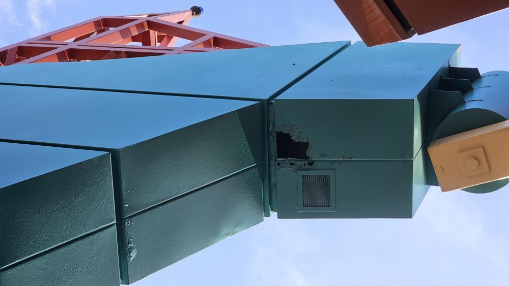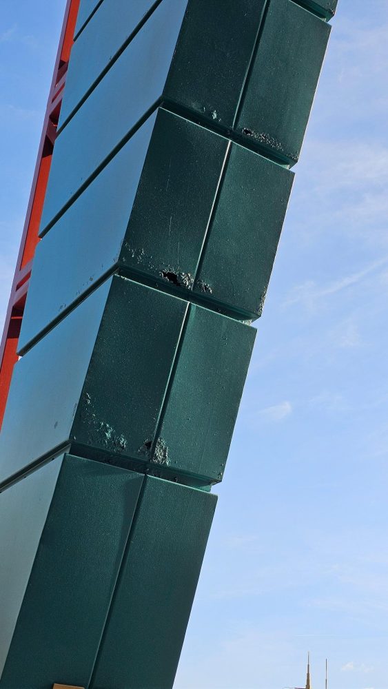 Since the publication of our previous article 11 months ago, here’s what’s been done following the publication of the video (see photo). The right thing to do would have been to simply clean/repaint the sign. After all, 2 garbage cans of rubbish aren’t going to prevent you from seeing the maintenance carried out on a luminous element in a dark place.