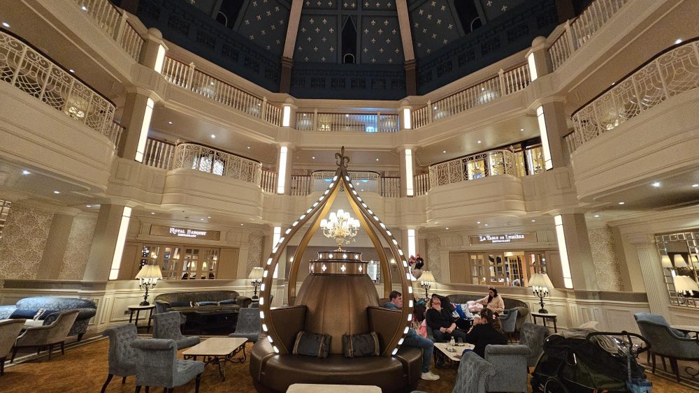 Il est aussi a noter que sur l’ensemble de la destination les chaises ont maintenant des assises qui sont en sky et non en tissu avec motif. Les changements sont progressifs, et ont déjà eux lieux au Disnyeland Hotel. L’objectif est de faciliter l’entretien au quotidien au dépend de la thématisation des équipements pour les visiteurs. Le mobilier est plus neutre et discret, comme dans le Disneyland Hotel