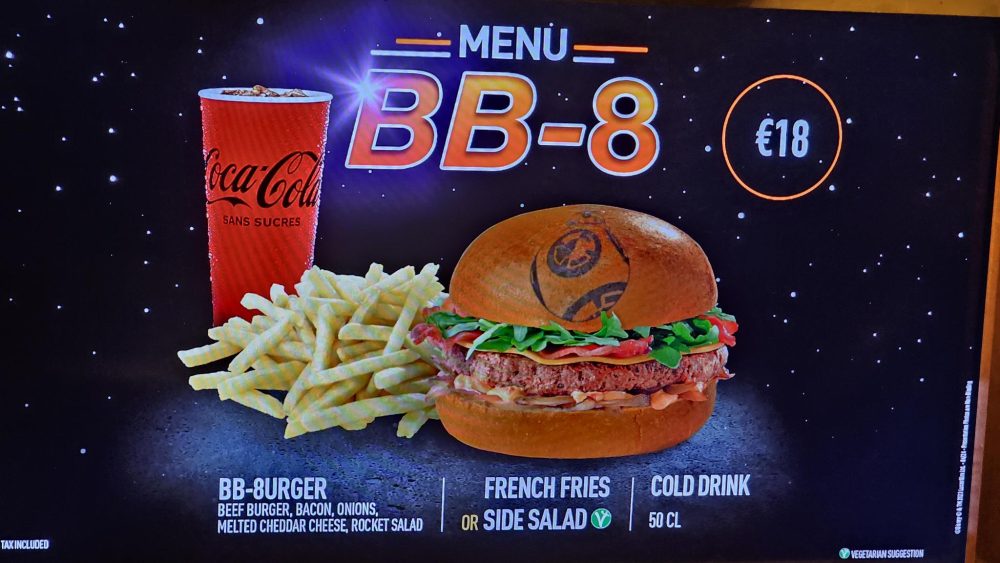 Si la France est le pays de la gastronomie, il est indéniable que Disneyland Paris est le site Disney qui offre le moins de choix et de qualité dans son offre de restauration. Lorsque ce sujet est abordé par des visiteurs, il est systématiquement en négatif. Ceci se caractérise par un Burger a 17€/$18 (burger, frites et boisson) ce qui est déraisonnable en Europe et encore moins acceptable à la vue de la qualité ! Les nouveaux restaurants/snack sont systématiquement avec une carte sans menu, et donc plus cher. Et l’offre saisonnière ? absente ! Ce qui est un élément incontournable pour un parc à thème.